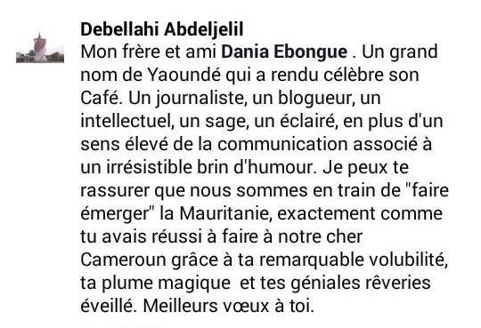 Le blog Yaoundé Café , est une invitation à déguster ses infos, son humour et même son humeur, avec un seul fil conducteur: Permettre à l’Afrique de sortir de l’obscurantisme en conscientisant sa jeunesse. Vous lirez beaucoup de chroniques sur le Cameroun, car DANIA pense que le Cameroun mérite un souffle nouveau, et avec lui, toute l’Afrique qui souffre des mêmes maux. Mais « Yaoundé Café » vous ouvre sur le monde, sur toutes les problématiques contemporaines, sur les faits sociaux, historiques, sportifs, religieux, philosophiques et mythologiques. Il s’agit donc d’un bouillon de cultures. C’est un blog militant, avec des touches d’alerte, et des perspectives d’espoir pour un meilleur monde demain.